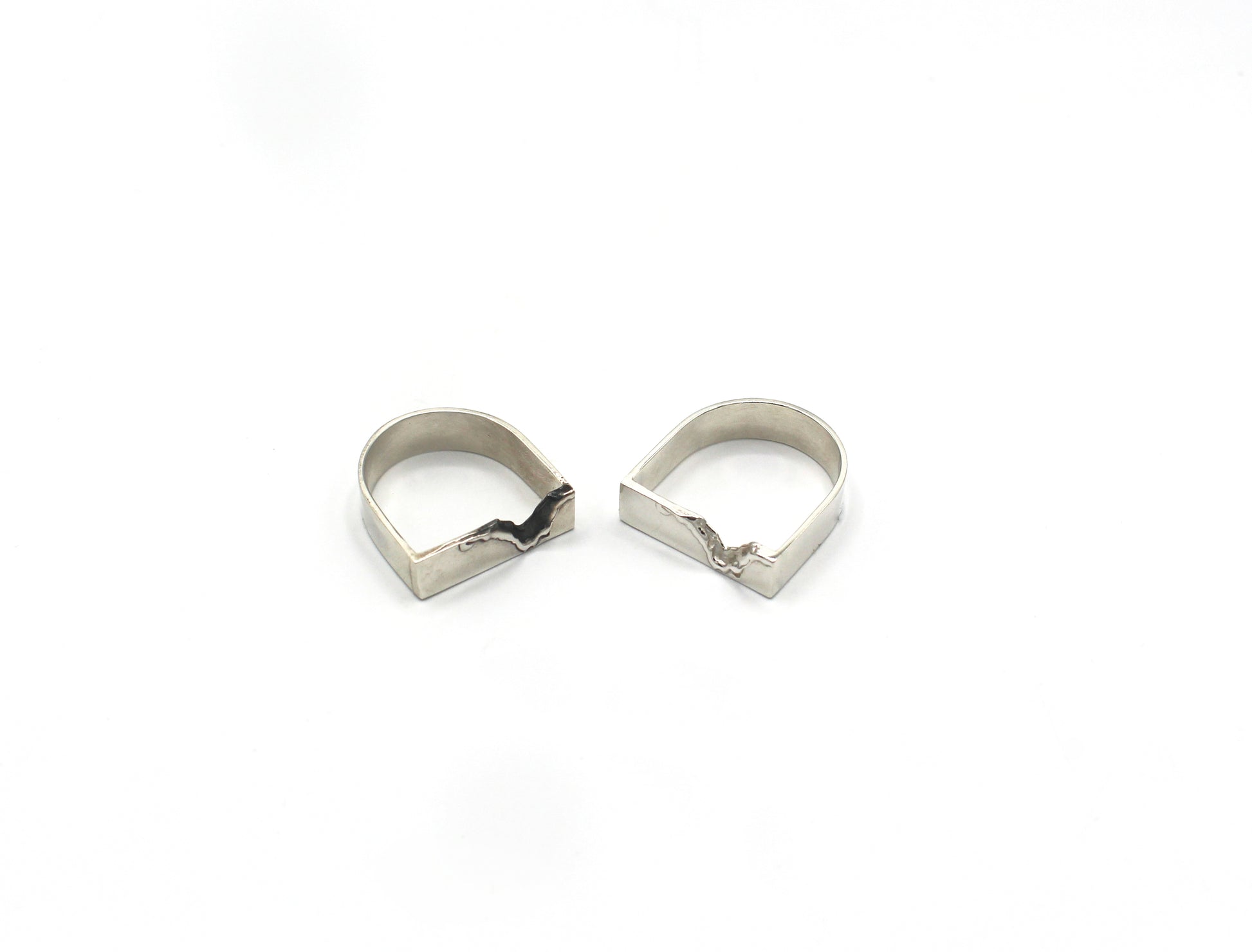 Collection Fall: Inspirée par le mouvement, la collection explore les courbes et les contraintes qu'exerce les vents sur la nature . La matière brute et figée du métal contraste avec la légèreté de l’air. Modelées à la main dans de fines plaques de cire, chaque pièce est ensuite retravaillée en métal afin d’obtenir l’interprétation la plus fidèle d’un mouvement envoûtant et organique.