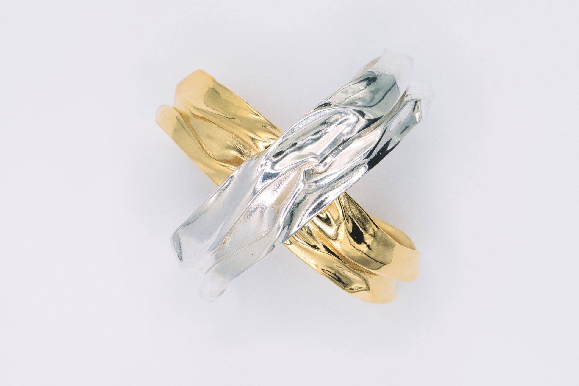 Collection Fall: Inspirée par le mouvement, la collection explore les courbes et les contraintes qu'exerce les vents sur la nature . La matière brute et figée du métal contraste avec la légèreté de l’air. Modelées à la main dans de fines plaques de cire, chaque pièce est ensuite retravaillée en métal afin d’obtenir l’interprétation la plus fidèle d’un mouvement envoûtant et organique.