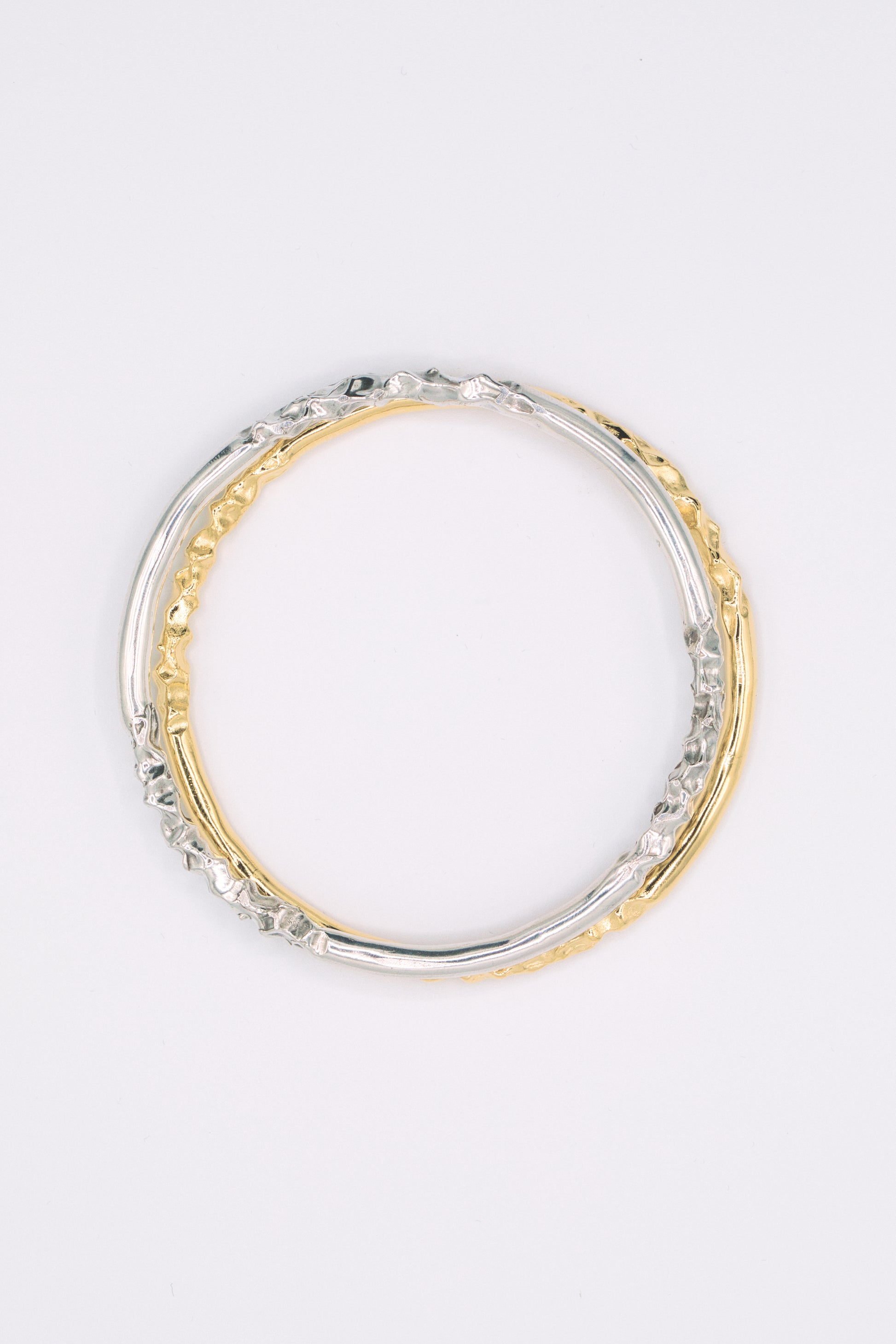 Collection Fall: Inspirée par le mouvement, la collection explore les courbes et les contraintes qu'exerce les vents sur la nature . La matière brute et figée du métal contraste avec la légèreté de l’air. Modelées à la main dans de fines plaques de cire, chaque pièce est ensuite retravaillée en métal afin d’obtenir l’interprétation la plus fidèle d’un mouvement envoûtant et organique.